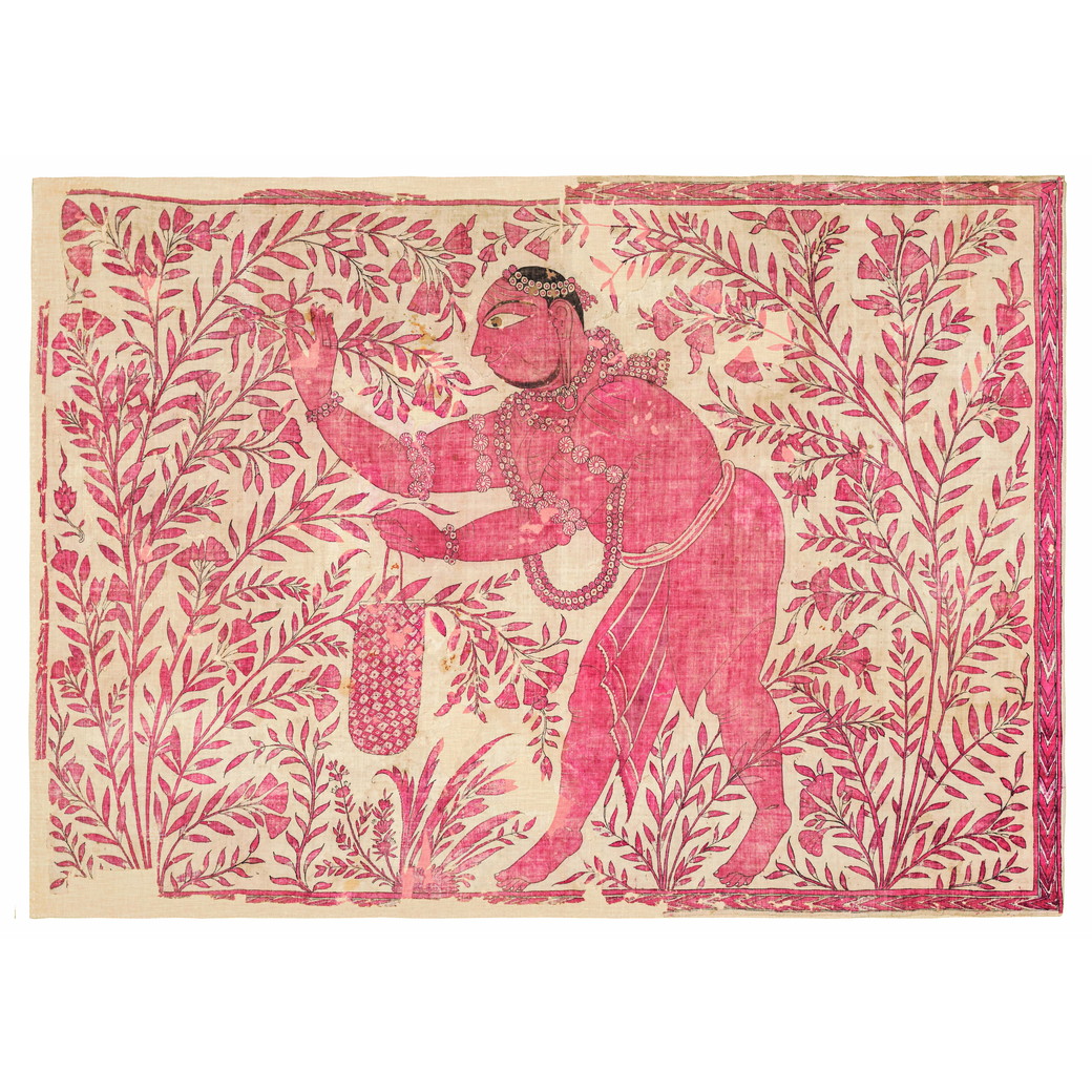 インドの代表的な染織品である更紗。木綿という優れた機能を持ちながらも染色の難しい素材に、天然染料の茜や藍を用いて複雑な文様を色鮮やかに、そして堅牢に染め上げる職人の技術は世界中の人々を魅了しました。更紗は古くから東南アジアやヨーロッパ諸国、日本においても高級品として重宝されるとともに、商人からの要望に応じて各国の好みに合わせた新しいデザインが生み出されるなど海を越えた文化交流の舞台にもなりました。
