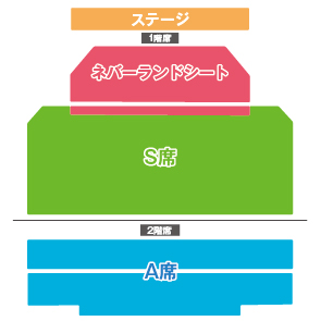 | チケット | ★ネバーランドシート(妖精の粉付) <1階1列~11列9番~44番> 【おとな】9,200円 【こども】7,300円 ★S席 <1階11列4番~8番・45番~49番、1階12列~30列> 【おとな】8,700円 【こども】6,800円 ★A席 <2階席> 【おとな】5,000円 【こども】3,500円