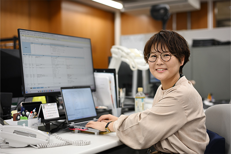 社内は落ち着いた雰囲気で、集中できる働きやすさがあります。上司や先輩方に相談しやすく、日々の業務で感じた悩みや課題に対して自分だけでは考えられないような発見を得られることも多いです。スキルアップのための資格取得の支援も手厚く、私自身も業務に役立つ資格の勉強に励んでいます。同期には未経験からエンジニアとして活躍しているメンバーや、Webサイト制作のデザインに携わるメンバーもいて、違う分野で頑張る姿がいい刺激になっています。お互いに声をかけ合える温かい職場だと感じています。